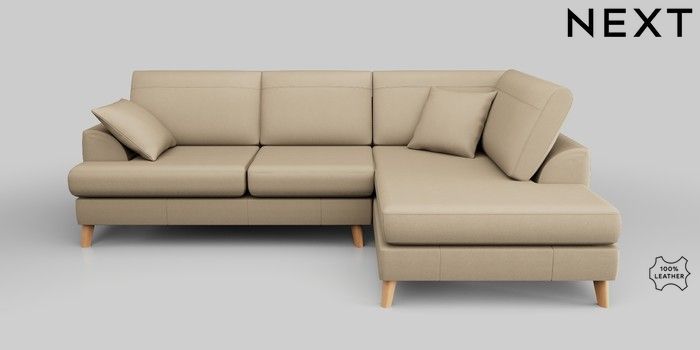 7.0.3 Buy Parker Leather Medium Corner Chaise - Right Hand Turin Leather Light Natural Low Retro Tapered - Light from the Next UK online shop Click here to use our accessible website