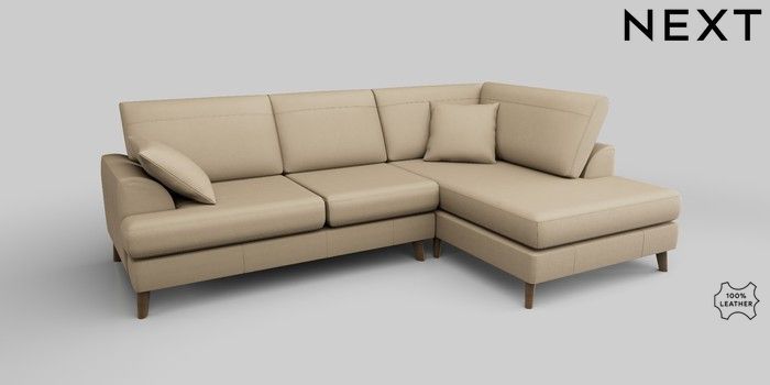 6.12.1 Buy Parker Leather Medium Corner Chaise - Right Hand Turin Leather Light Natural Low Retro Tapered - Mid from the Next UK online shop Click here to use our accessible website