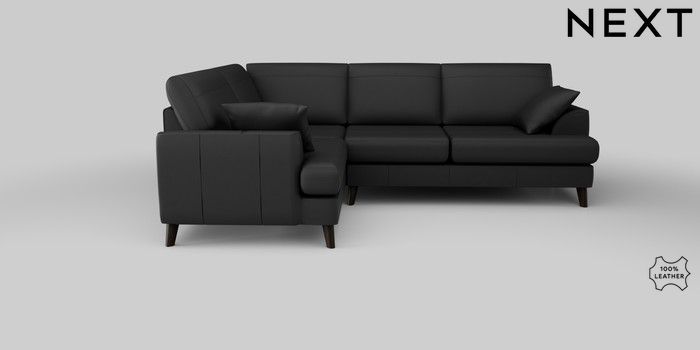 6.12.1 Buy Parker Leather Medium Corner Sofa - Left Hand Columbia Black Low Retro Tapered - Dark from the Next UK online shop Click here to use our accessible website