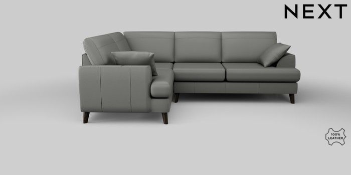 6.12.1 Buy Parker Leather Medium Corner Sofa - Left Hand Columbia French Grey Low Retro Tapered - Dark from the Next UK online shop Click here to use our accessible website