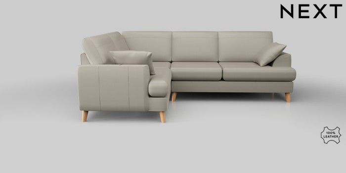6.12.1 Buy Parker Leather Medium Corner Sofa - Left Hand Columbia Silver Grey Low Retro Tapered - Light from the Next UK online shop Click here to use our accessible website
