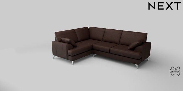 6.12.1 Buy Parker Leather Medium Corner Sofa - Left Hand Rustic Leather Dark Brown High Metal - Chrome from the Next UK online shop Click here to use our accessible website