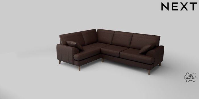 6.12.1 Buy Parker Leather Medium Corner Sofa - Left Hand Rustic Leather Dark Brown Low Retro Tapered - Mid from the Next UK online shop Click here to use our accessible website