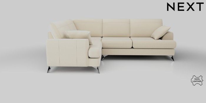 6.12.1 Buy Parker Leather Medium Corner Sofa - Left Hand Turin Leather Cream High Metal - Chrome from the Next UK online shop Click here to use our accessible website