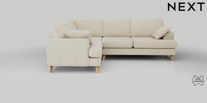 6.12.1 Buy Parker Leather Medium Corner Sofa - Left Hand Turin Leather Cream Low Retro Tapered - Light from the Next UK online shop Click here to use our accessible website