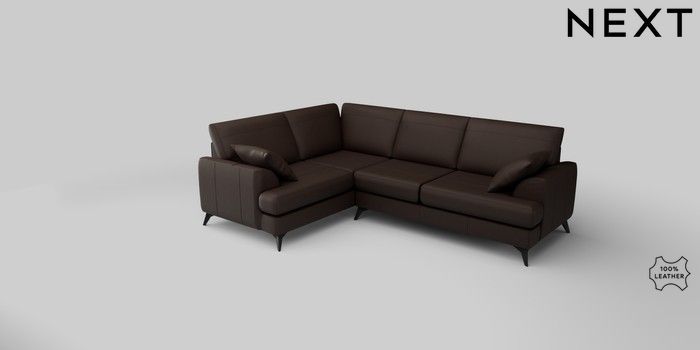 6.12.1 Buy Parker Leather Medium Corner Sofa - Left Hand Turin Leather Dark Brown High Metal - Black from the Next UK online shop Click here to use our accessible website