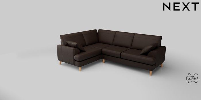 6.12.1 Buy Parker Leather Medium Corner Sofa - Left Hand Turin Leather Dark Brown Low Retro Tapered - Light from the Next UK online shop Click here to use our accessible website