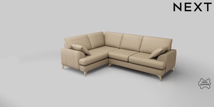 6.12.1 Buy Parker Leather Medium Corner Sofa - Left Hand Turin Leather Light Natural High Metal - Brass from the Next UK online shop Click here to use our accessible website