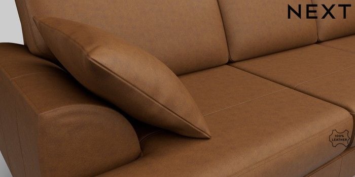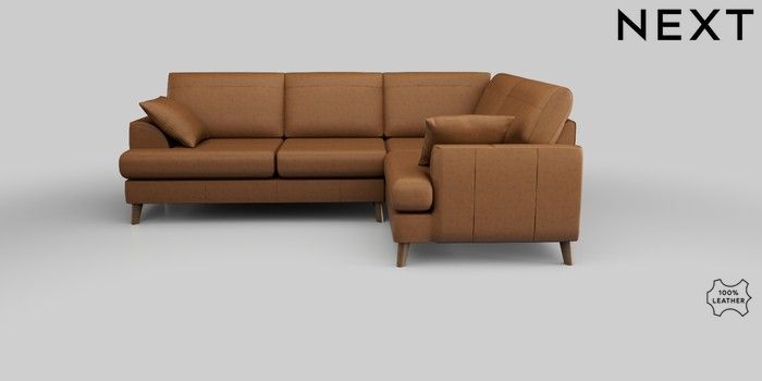 6.12.1 Buy Parker Leather Medium Corner Sofa - Right Hand Antiqued Leather Light Tan Brown Low Retro Tapered - Mid from the Next UK online shop Click here to use our accessible website