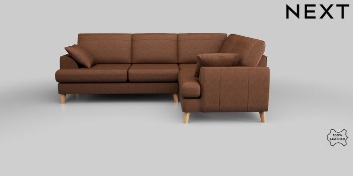 6.12.1 Buy Parker Leather Medium Corner Sofa - Right Hand Rustic Leather Light Brown Low Retro Tapered - Light from the Next UK online shop Click here to use our accessible website