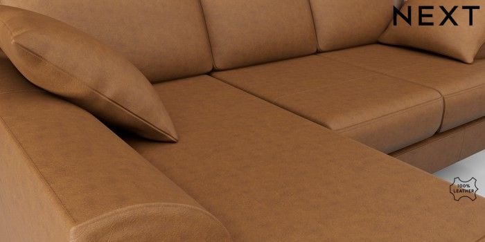 6.12.1 Buy Parker Leather Small Sofa Chaise - Left Hand Antiqued Leather Light Tan Brown Low Retro Tapered - Light from the Next UK online shop Click here to use our accessible website