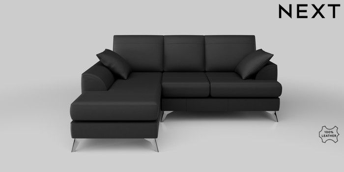 6.12.1 Buy Parker Leather Small Sofa Chaise - Left Hand Columbia Black High Metal - Chrome from the Next UK online shop Click here to use our accessible website