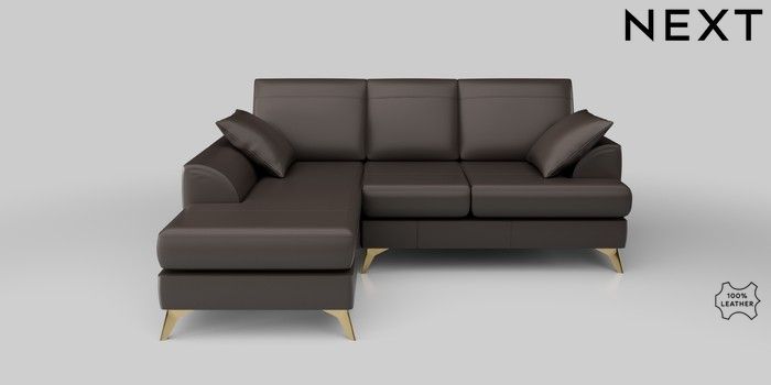 6.12.1 Buy Parker Leather Small Sofa Chaise - Left Hand Columbia Dark Brown High Metal - Brass from the Next UK online shop Click here to use our accessible website