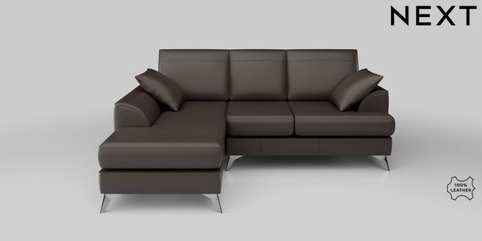6.12.1 Buy Parker Leather Small Sofa Chaise - Left Hand Columbia Dark Brown High Metal - Chrome from the Next UK online shop Click here to use our accessible website