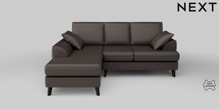 6.12.1 Buy Parker Leather Small Sofa Chaise - Left Hand Columbia Dark Brown Low Retro Tapered - Dark from the Next UK online shop Click here to use our accessible website