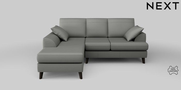6.12.1 Buy Parker Leather Small Sofa Chaise - Left Hand Columbia French Grey Low Retro Tapered - Dark from the Next UK online shop Click here to use our accessible website