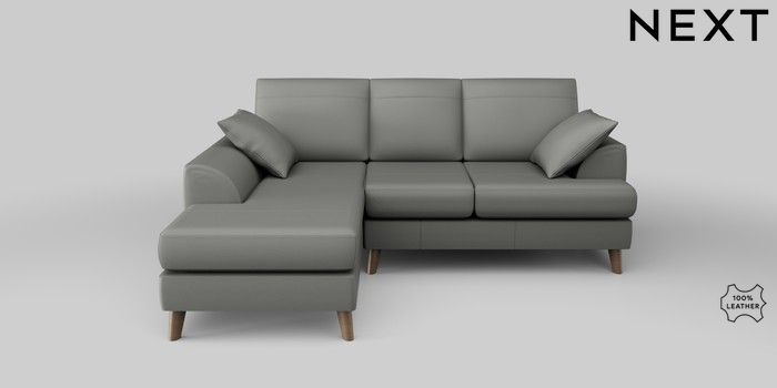 6.12.1 Buy Parker Leather Small Sofa Chaise - Left Hand Columbia French Grey Low Retro Tapered - Mid from the Next UK online shop Click here to use our accessible website