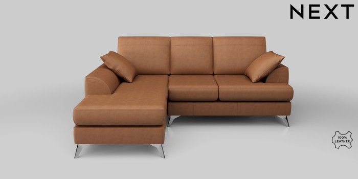 6.12.1 Buy Parker Leather Small Sofa Chaise - Left Hand Turin Leather Tan Brown High Metal - Chrome from the Next UK online shop Click here to use our accessible website
