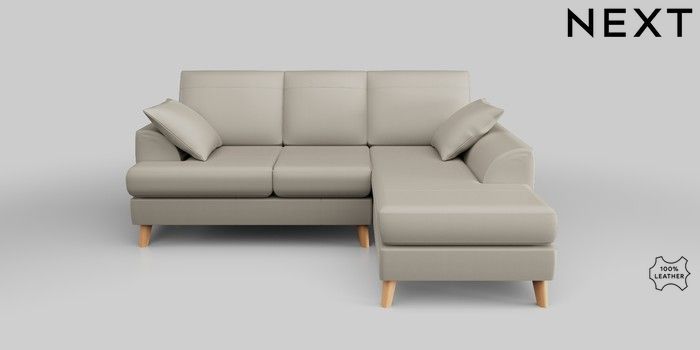 6.12.1 Buy Parker Leather Small Sofa Chaise - Right Hand Columbia Silver Grey Low Retro Tapered - Light from the Next UK online shop Click here to use our accessible website