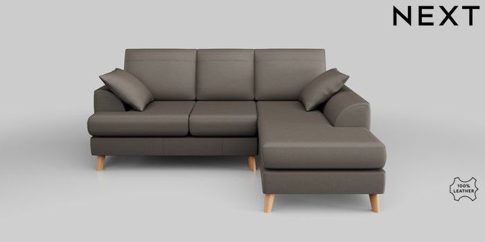 6.12.1 Buy Parker Leather Small Sofa Chaise - Right Hand Turin Leather French Grey Low Retro Tapered - Light from the Next UK online shop Click here to use our accessible website