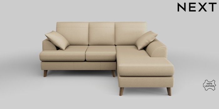7.0.3 Buy Parker Leather Small Sofa Chaise - Right Hand Turin Leather Light Natural Low Retro Tapered - Mid from the Next UK online shop Click here to use our accessible website