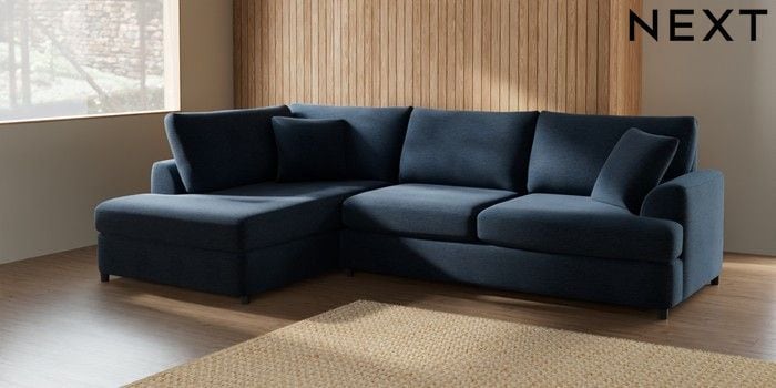 6.12.1 Buy Parker Platform Large Corner Chaise - Left Hand Ripple Chenille Dark Blue Glide from the Next UK online shop Click here to use our accessible website