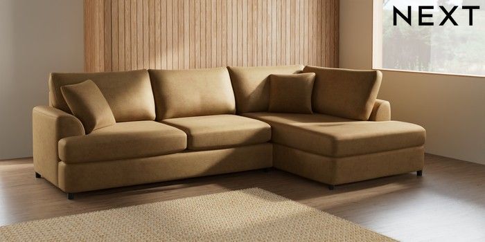 6.12.1 Buy Parker Platform Large Corner Chaise - Right Hand Luxe Chenille Honey Yellow Glide from the Next UK online shop Click here to use our accessible website