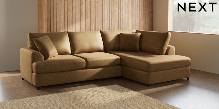 6.12.1 Buy Parker Platform Medium Corner Chaise - Right Hand Luxe Chenille Honey Yellow Glide from the Next UK online shop Click here to use our accessible website