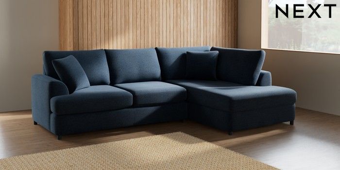 6.12.1 Buy Parker Platform Medium Corner Chaise - Right Hand Ripple Chenille Dark Blue Glide from the Next UK online shop Click here to use our accessible website