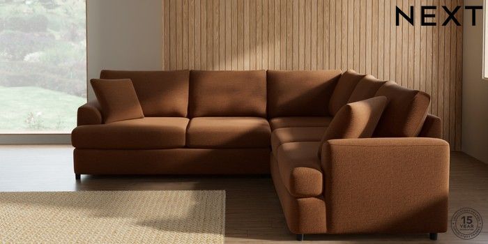 6.12.1 Buy Parker Platform Medium Corner Sofa - Universal Ripple Chenille Mid Rust Brown Glide from the Next UK online shop Click here to use our accessible website