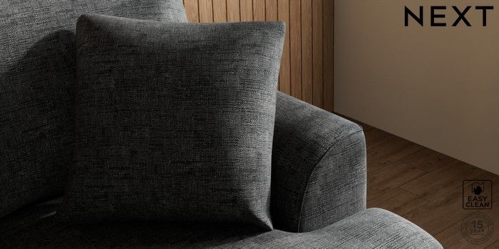 7.3.1 Buy Parker 2 Seater Small Sofa Boucle Weave Easy Clean Charcoal Grey Low Retro Tapered - Mid from the Next UK online shop Click here to use our accessible website