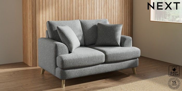 7.3.1 Buy Parker 2 Seater Small Sofa Chunky Boucle Easy Clean Mid Grey Low Retro Tapered - Light from the Next UK online shop Click here to use our accessible website
