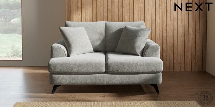 7.2.5 Buy Parker 2 Seater Small Sofa Chunky Chenille Light Grey High Metal - Black from the Next UK online shop Click here to use our accessible website
