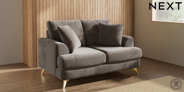 7.2.10 Buy Parker 2 Seater Small Sofa Chunky Chenille Mink Brown High Metal - Brass from the Next UK online shop Click here to use our accessible website
