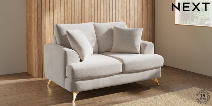 7.2.10 Buy Parker 2 Seater Small Sofa Chunky Chenille Oyster High Metal - Brass from the Next UK online shop Click here to use our accessible website