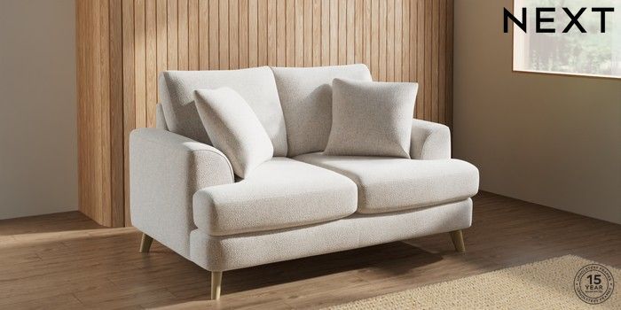 7.2.10 Buy Parker 2 Seater Small Sofa Chunky Marl Oyster Low Retro Tapered - Light from the Next UK online shop Click here to use our accessible website