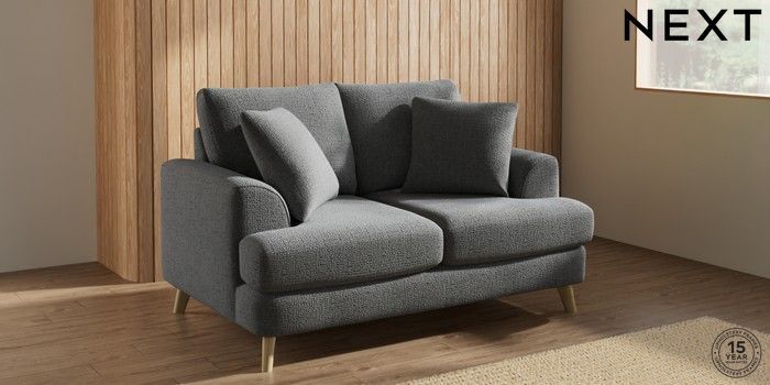 7.2.10 Buy Parker 2 Seater Small Sofa Chunky Texture Dark Grey Low Retro Tapered - Light from the Next UK online shop Click here to use our accessible website