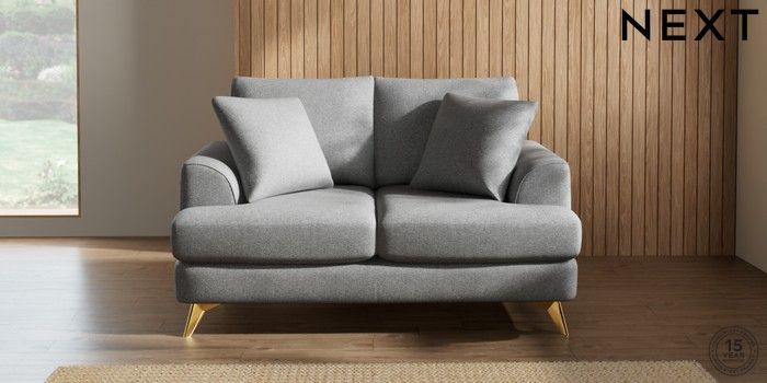 7.2.5 Buy Parker 2 Seater Small Sofa Chunky Weave Mid Grey High Metal - Brass from the Next UK online shop Click here to use our accessible website
