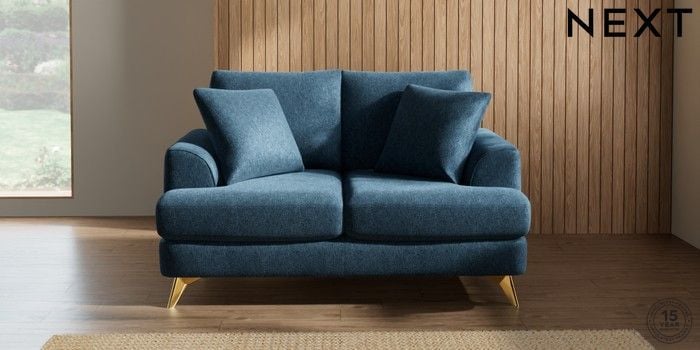 7.2.5 Buy Parker 2 Seater Small Sofa Cotswold Chenille Dark Blue High Metal - Brass from the Next UK online shop Click here to use our accessible website