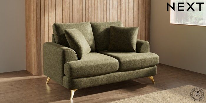 7.3.1 Buy Parker 2 Seater Small Sofa Cotswold Chenille Dark Green High Metal - Brass from the Next UK online shop Click here to use our accessible website