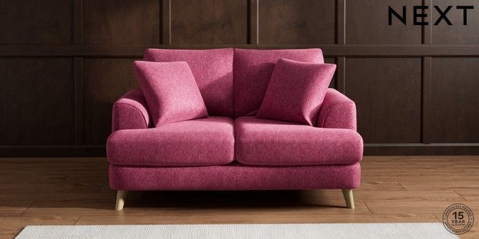 7.2.5 Buy Parker 2 Seater Small Sofa Cotswold Chenille Dark Raspberry Pink Low Retro Tapered - Light from the Next UK online shop Click here to use our accessible website