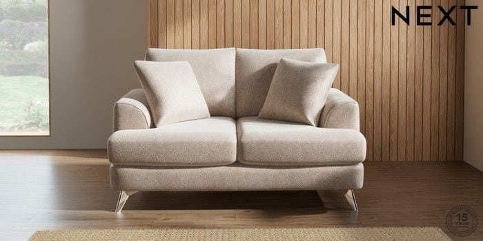 7.2.5 Buy Parker 2 Seater Small Sofa Cotswold Chenille Light Natural High Metal - Chrome from the Next UK online shop Click here to use our accessible website