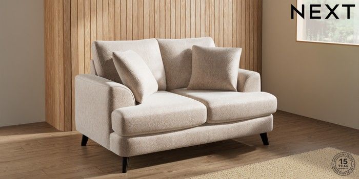 7.2.4 Buy Parker 2 Seater Small Sofa Cotswold Chenille Light Natural Low Retro Tapered - Dark from the Next UK online shop Click here to use our accessible website