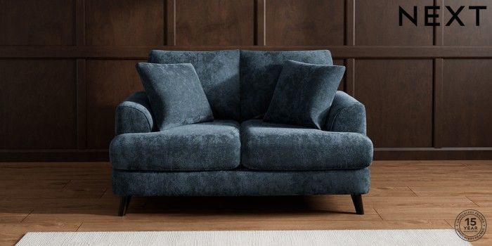 7.2.4 Buy Parker 2 Seater Small Sofa Distressed Velour Midnight Blue Low Retro Tapered - Dark from the Next UK online shop Click here to use our accessible website