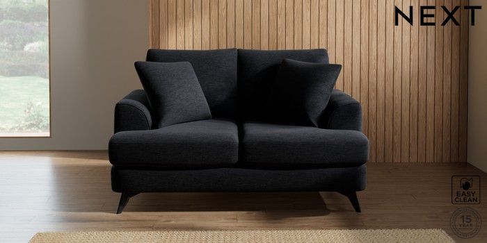 7.2.5 Buy Parker 2 Seater Small Sofa Fine Chenille Easy Clean Black High Metal - Black from the Next UK online shop Click here to use our accessible website