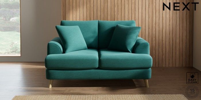 7.2.5 Buy Parker 2 Seater Small Sofa Fine Chenille Easy Clean Dark Juniper Green Low Retro Tapered - Light from the Next UK online shop Click here to use our accessible website
