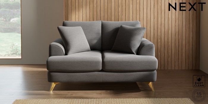 7.2.5 Buy Parker 2 Seater Small Sofa Fine Chenille Easy Clean Dark Smoke Grey High Metal - Brass from the Next UK online shop Click here to use our accessible website