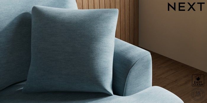 7.2.10 Buy Parker 2 Seater Small Sofa Fine Chenille Easy Clean Mid Blue Low Retro Tapered - Dark from the Next UK online shop Click here to use our accessible website