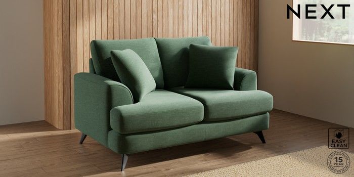 7.3.1 Buy Parker 2 Seater Small Sofa Fine Chenille Easy Clean Mid Khaki Green High Metal - Black from the Next UK online shop Click here to use our accessible website