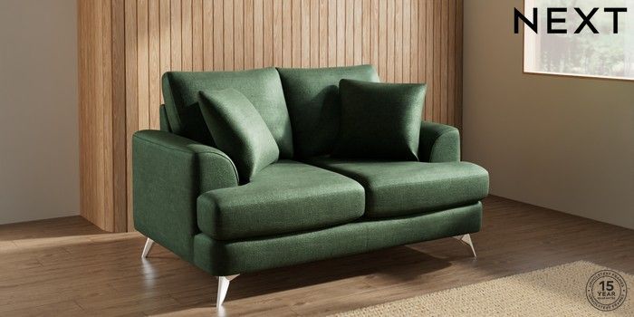 7.2.10 Buy Parker 2 Seater Small Sofa Luxe Chenille Dark Green High Metal - Chrome from the Next UK online shop Click here to use our accessible website